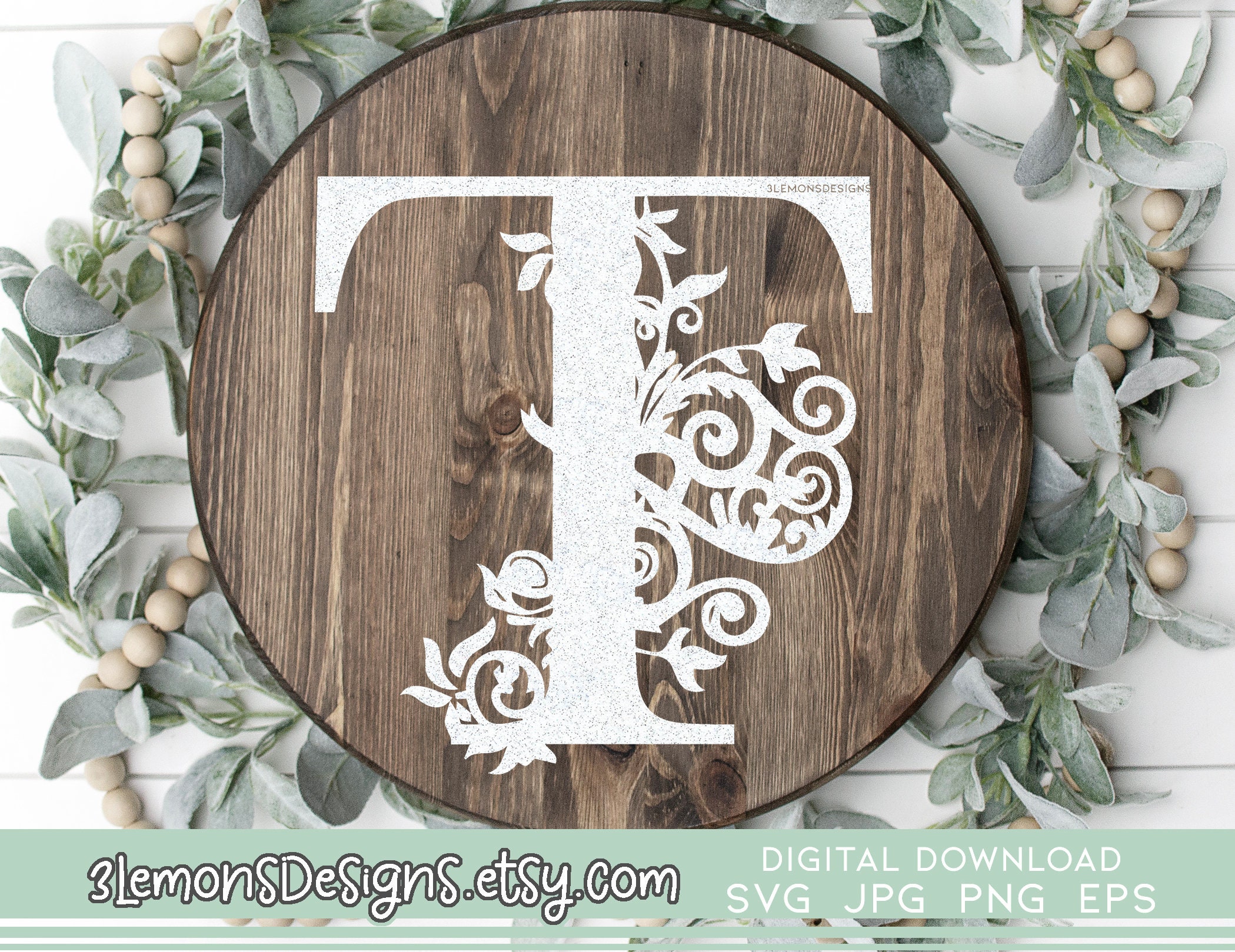 Lettera T floreale SVG monogramma cognome lettera lettera ...
